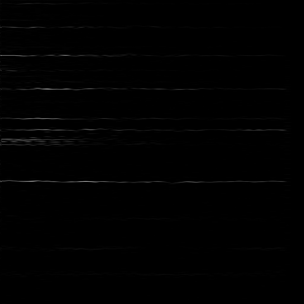 I transferred the DSSCBell sample to MetaSynth, analyzed it, and got the picture attached here as a result. I know, it’s cropped, but almost everything else was just black and I didn’t want to fill this article with black. The original sample suffered from bad looping and artifacts in the background (someone, probably myself, had stepped on a glass shard in the ground, for example), and since the bells were obviously recorded from a distance, there was quite a lot going on. And as I wanted the original tone of bells, with original attack transient AND longer body, it needed to be lengthened… Right. Ok, it was already in the picture form, with enough harmonic and enharmonic info included. And all the noise as well. What next? Enter certain photomangling software, which came in free with a scanner back in when granny had teeth. I had to keep the transient, since the sound had to be recognizable, so just scaling the x-axis wasn’t an option. Copy, paste, erase the beginning with a soft rubber, switch on the original picture, rubber off everything after the transient, combine. Remove everything else not needed, including the stepping on the glass shard. It seemed ok, and could confirm that after I imported the PICT file back to MetaSynth.